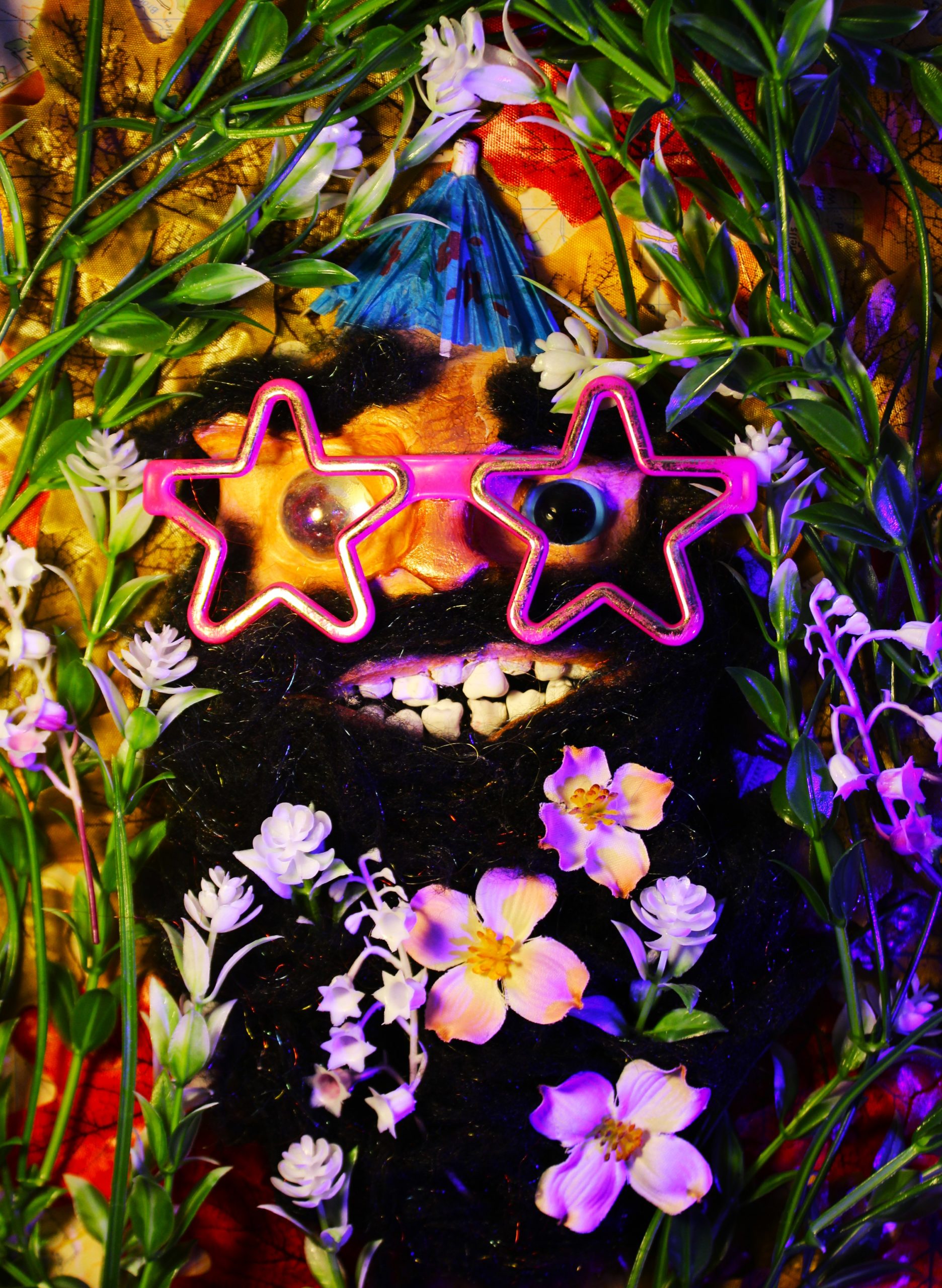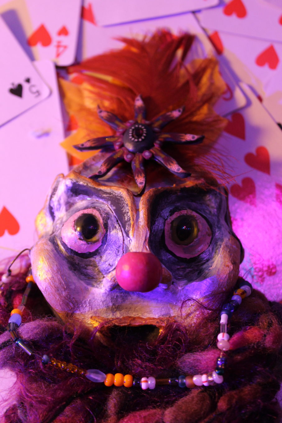 Pip explores and mixes many mediums including paint, collage, sculpture and many more, with a focus on creating strange surreal scenes and colourful characters from old toys and found treasure, clay, wire and various other materials.